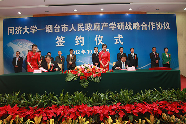 仪式上,裴刚、王良分别代表同济大学和烟台市政府签订产学研战略合作协议书,孙方霖与烟台开发区、高新区及有关企业签订合作协议和意向合作协议书。
